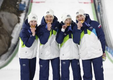 本届冬季运动会,匹克为斯洛文尼亚、拉脱维亚、比利时等 8 个国家代表团提供全场景专业装备,覆盖跳台滑雪、雪橇、短道速滑等多个项目。赛场上,匹克军团多点突破:斯洛文尼亚跳台滑雪队强势卫冕、两度摘金;拉脱维亚选手埃莉娜·博塔摘得女子单人雪橇银牌,实现该国该项目冬季运动会历史突破;比利时短道速滑混合接力队拿下铜牌,书写队史新篇。7名运动员(团队)身着匹克领奖服荣耀登台,每一枚奖牌都印证匹克装备的专业实力与稳定支撑。